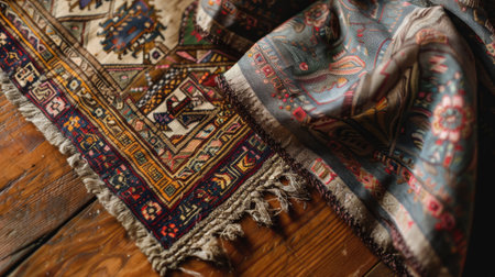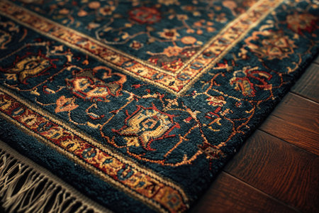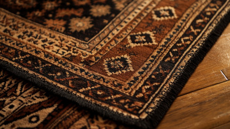 Intricate patterns and rich texture of woven carpet showcase craftsmanship