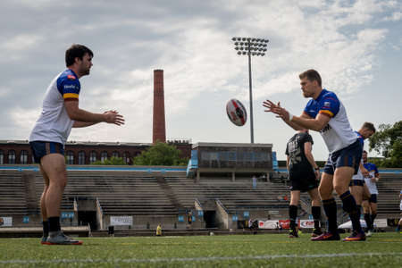 September 02, 2017. Toronto, Canada - Players of Whitehaven warms-up before Super 8s Round 4 game between Toronto Wolfpack (Canada) vs Whitehaven RLFC (United Kingdom) at Allan A. Lamport Stadium in Toronto, Canada