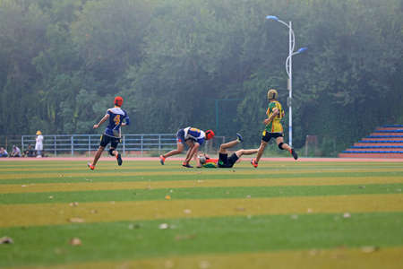 LUANNAN COUNTY, Hebei Province, China-August 14, 2020: The students are practicing Rugby on the playground