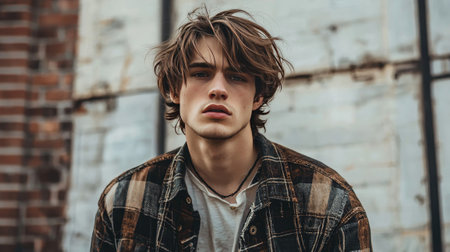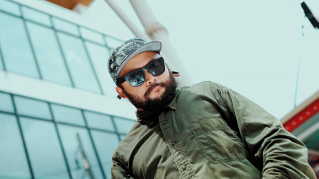 Street Fashion of stylish Long hair with beard man in a isolated place