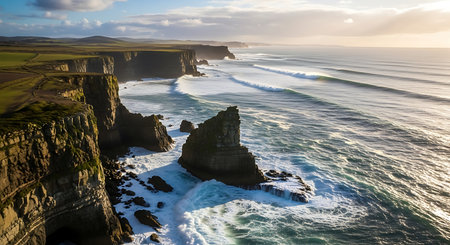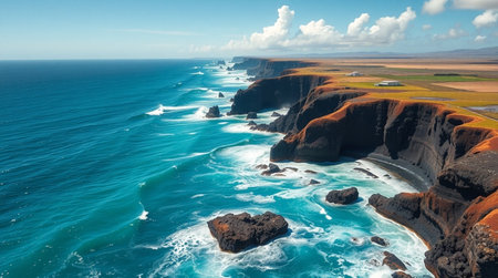 Stunning coastal cliffs with waves crashing against the rugged shoreline