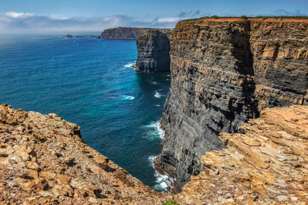 Atlantic ocean cliffs. Sagres, Algarve, Portugal.
