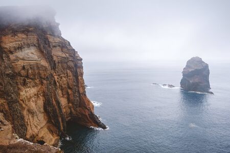 Aerial view of the cliffs of Ponta de Sao Lourenco, Portugal