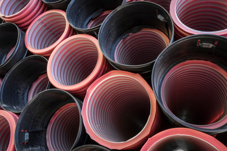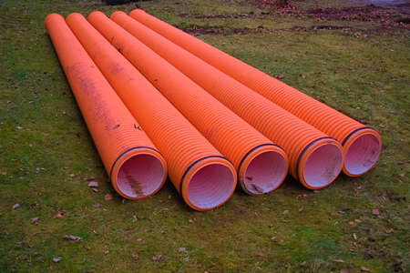 Construction orange and black plastic pipes