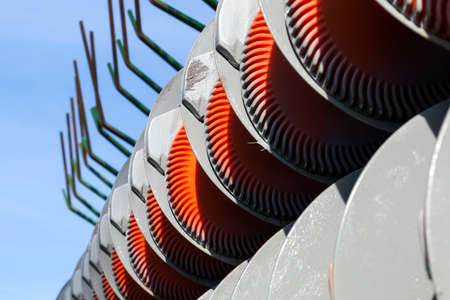 details of the plow of agricultural machinery for tillage, closeup