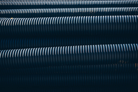 Close up of black plastic pipes for water with diminishing perspective