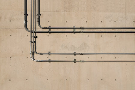 Concrete wall and metal plumbing