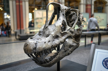 Belin, Germany - 20 December 2022: Exhibition of skull of prehistoric dinosaur in Berlin museum.
