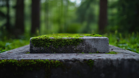 A stone slab with moss growing on it. The moss is green and the slab is gray