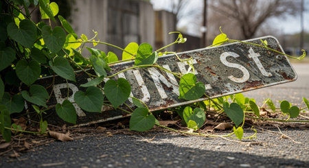 A weathered sign with the word 'Pripyat' in Cyrillic script, standing in an overgrown, abandoned area, likely referencing the ghost town of Pripyat near Chernobyl.