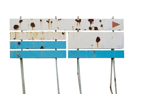 Blank, corroded metal sign, isolated on white background, free copy space