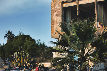 Abandoned building in Vlora, Albania, photographed on August 25, 2025. The crumbling concrete structure with exposed bricks