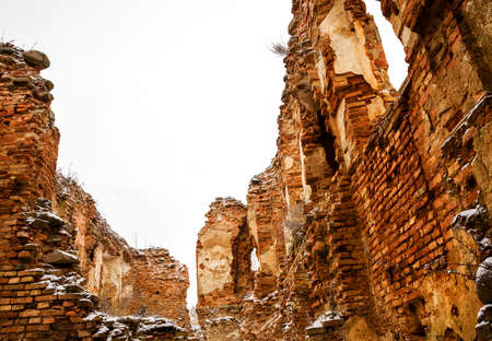 complex high-quality and interesting masonry of red brick, part of the ruins and ruined walls of medieval buildings in Europe