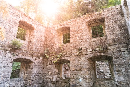 The ruins of Chapel of the XXII century, located in Loshitsky park, Belarus. The walls look mysterious.