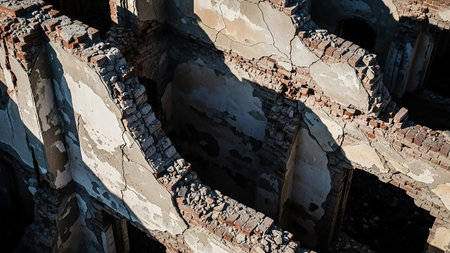 This is a picture of a very old building falling apart. It shows how important it is to protect and keep safe important cultural places and history.. Creative resource, AI Generated