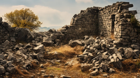AI Generated. Ancient Stone Walls and Ruins Under a Bright Blue Sky