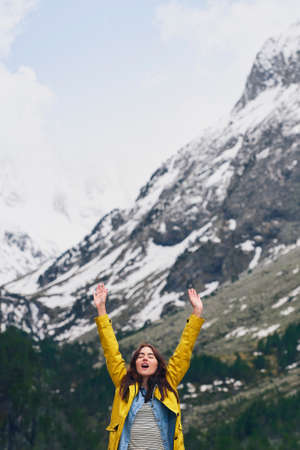 The mountains are calling, I must go. Shot of a young woman celebrating outside.