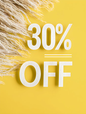 White '30% OFF' Promotional Sign on a Light Yellow Background