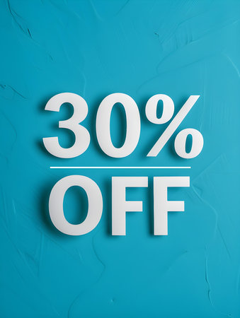 White '30% OFF' Promotional Sign on a Turquoise Background