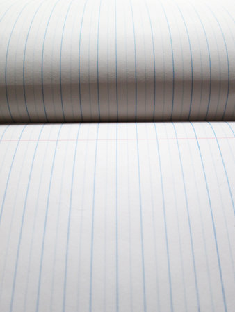 A macro, angled shot of a clean, white page from a lined notebook or journal. The parallel blue lines create a simple, minimalist background perfect for concepts related to writing, education, or note-taking.