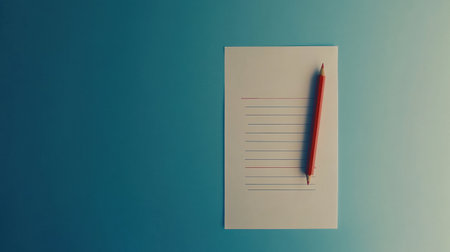 Piece of lined paper taped to a red background with copy space