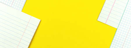Banner school education with blank pages of checkered and lined blank paged of school notebook or biary, copy space