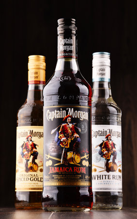 POZNAN, POLAND - NOV 8, 2017: Originated on US Virgin Islands Captain Morgan is a brand of rum produced by Diageo, British multinational alcoholic beverages company headquartered in London