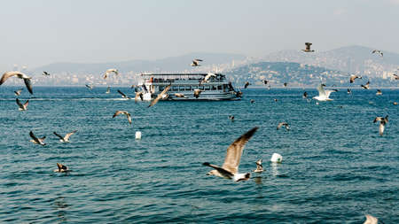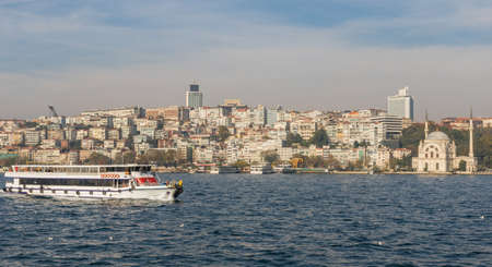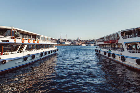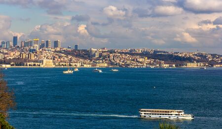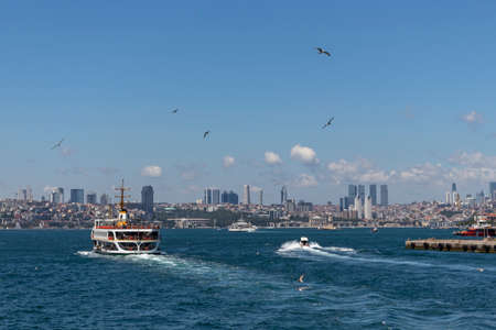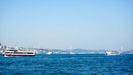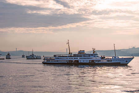 The passenger ferry ship is on the Bosphorus in Istanbul, Turkey