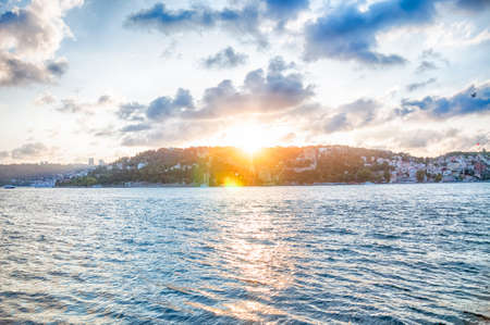 natural sunset landscape with river and sky near Istanbul, Turkey