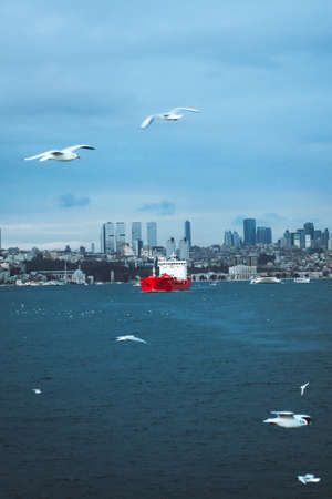 ISTANBUL, TURKEY - MARCH 12, 2016: View of vessels cross the river Bosporus on March 12, 2016 in Istanbul, Turkey.