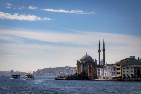 Istanbul,Turkey - 06-10-2021:View of the historical Ortakoy mosque from the sea
