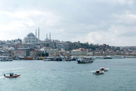 The main harbor of Istanbul with cruise liners anchored and sailing off the sea
