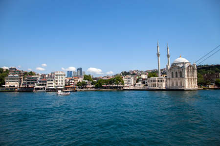 ISTANBUL, TURKEY - JULY 26, 2019: Buyuk Mecidiye Camii - Ortakoy Mosque in city of Istanbul, Turkey