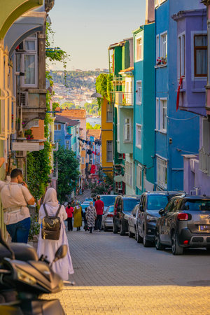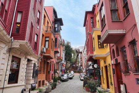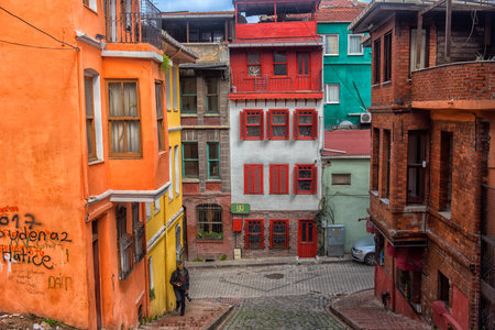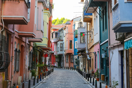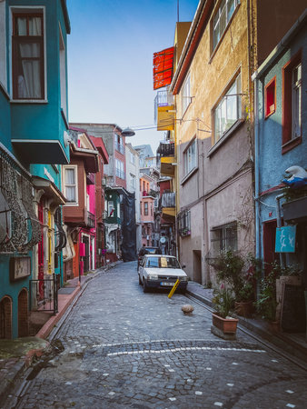 ISTANBUL, TURKEY - OCTOBER 2018: Street view from Balat district, the oldest neighborhoods in Istanbul with interesting architectural style and social diversity.