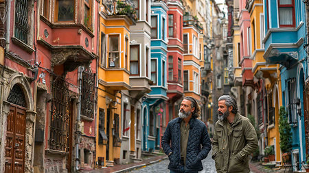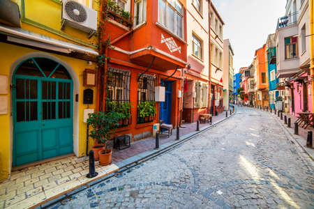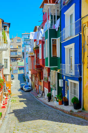 Istanbul, the streets of the old city, the houses are painted in bright colors