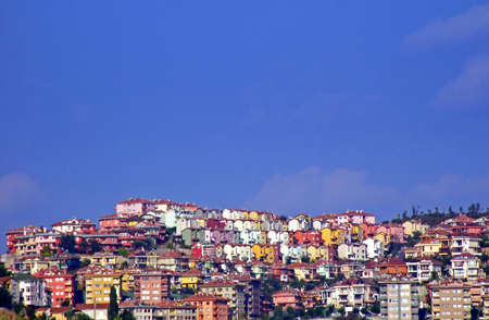 Colorful traditional houses on a hill over Bosphorus, Asia side of Istanbul, Turkey