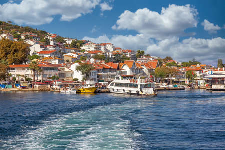 PRINCES ISLANDS, TURKEY - October 10th, 2019: View to beautiful island of Heibeliada on warm and sunny autumn day