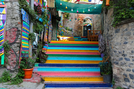 ISTANBUL, TURKEY - JULY 11, 2020: Street with Colorful Stairs in Fener District