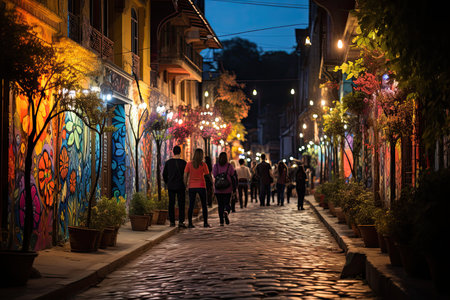 Vibrant Night in Bellavista, Santiago Street Art and Nightlife., generative AI