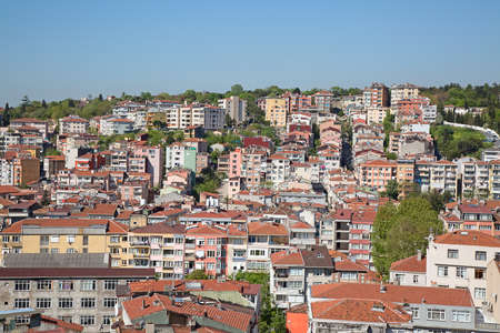 Cityscape with Galata Tower and colorful buildings, Istanbul, Turkey