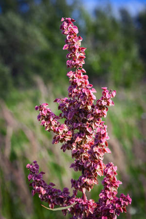 Wild Horse Sorrel Rumex Confertus Perennial Herbaceous Plant Close-Up.