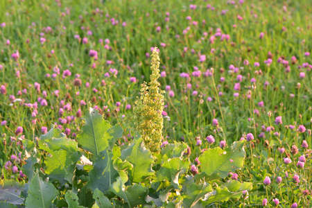 Plant horse sorrel (Latin Rúmex confértus). Perennial herbal, medicinal plant.
