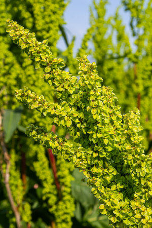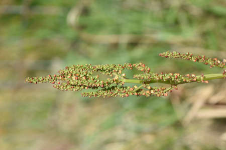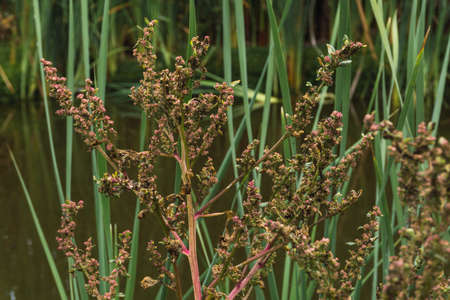 Rumex pseudonatronatus, great water dock summer flowers closeup selective focus.