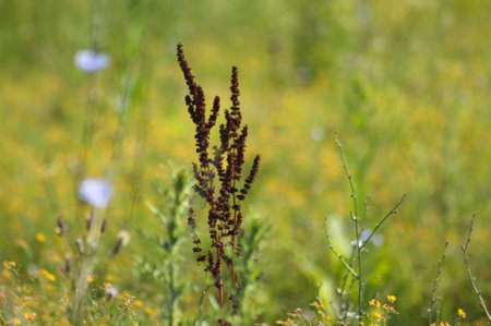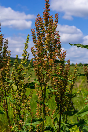Rumex acetosa flowers Common sorrel. Polygonaceae perennial plant. Edible and medicinal plants.