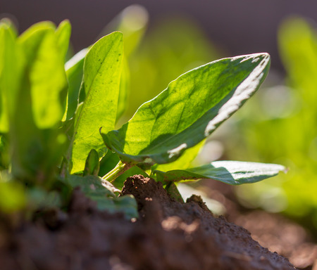 Young sorrel bushes. Healthy salad plants in the garden.
