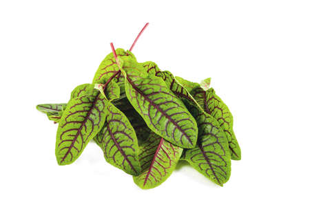 fresh red veined sorrel leaves isolated on the white background