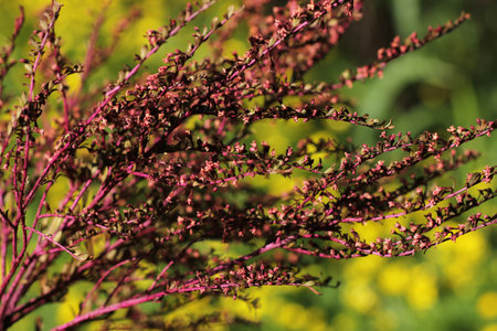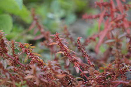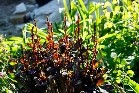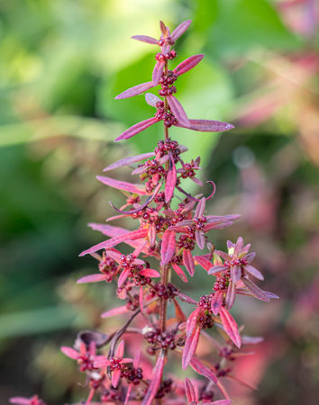 a red-leaved plant with the Latin name ATRIPLEX HORTENSIS illuminated by the sun