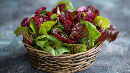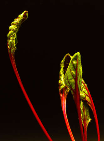 Fresh salad greens can be grown independently, for example, from a beet tuber. Young fresh leaves on a black background