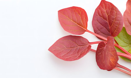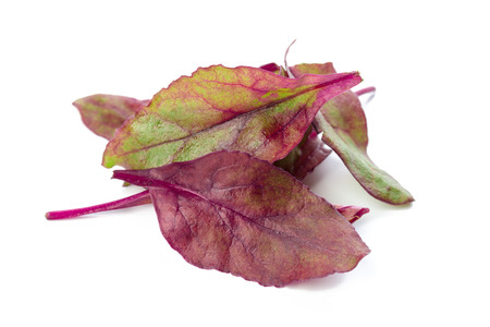 Sorrel green leaves isolated on white background. Flat lay, top view of fresh salad leaves. copyspace. Red micro veined sorrel.
