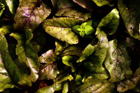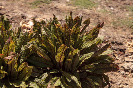 Rumex bucephalophorus docks small plant with a peculiar reddish color flash lighting